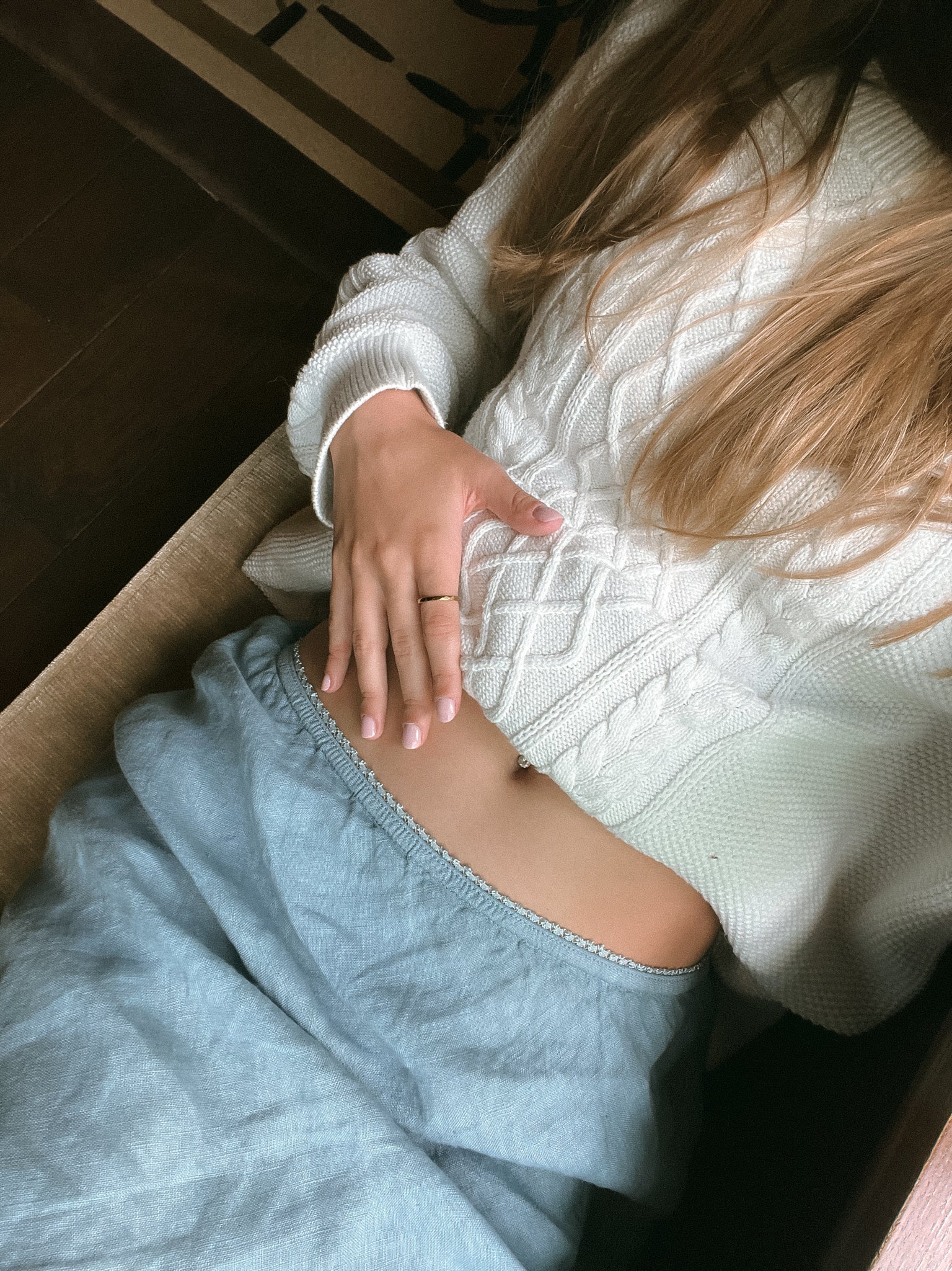The linen cloth drapes softly down to the ankle. It moves when you move. It breathes when you breathe.